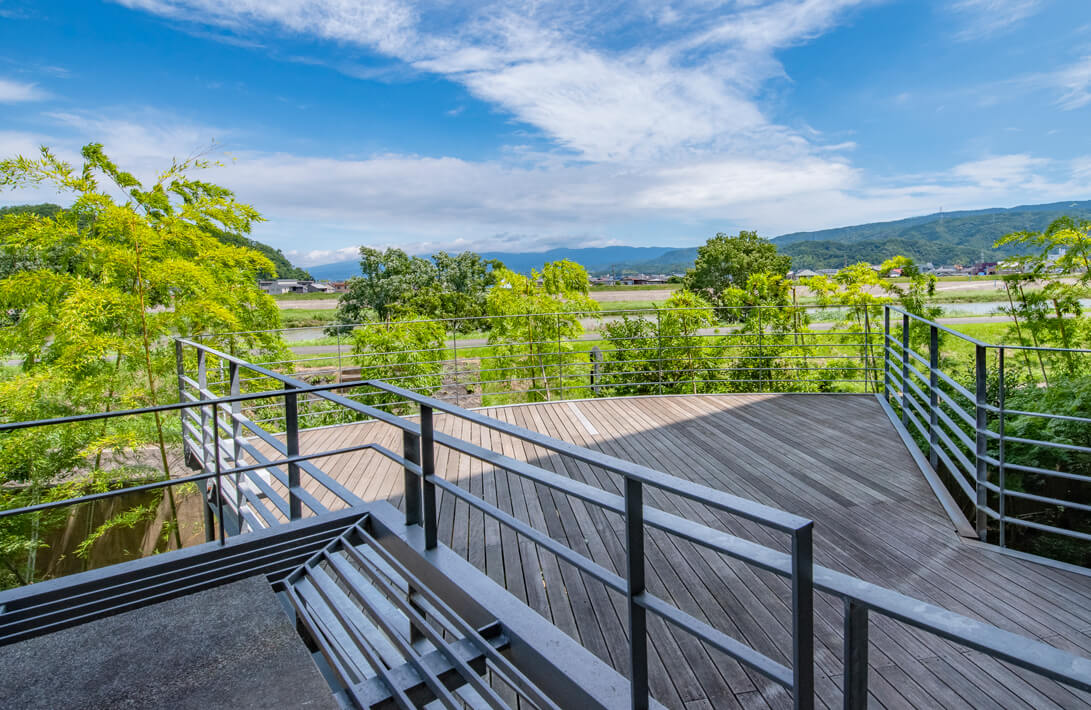 富嶽はなぶさから望む富士山の美しさを満喫いただける自慢の展望デッキ。