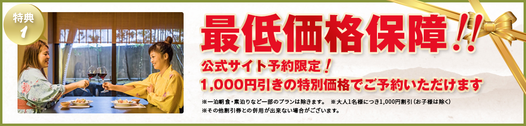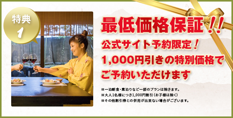 当公式ホームページのご宿泊料金は「最低価格」であることを保証いたします。