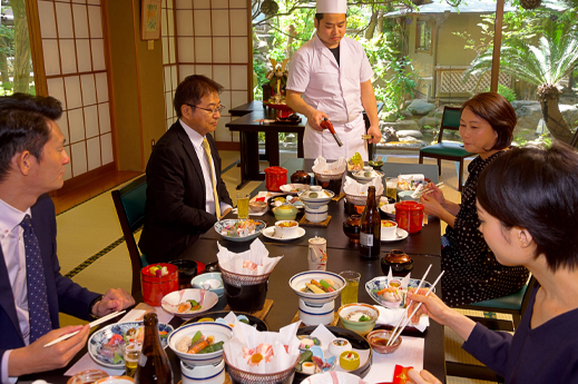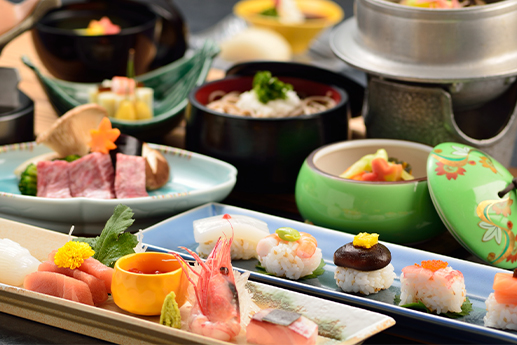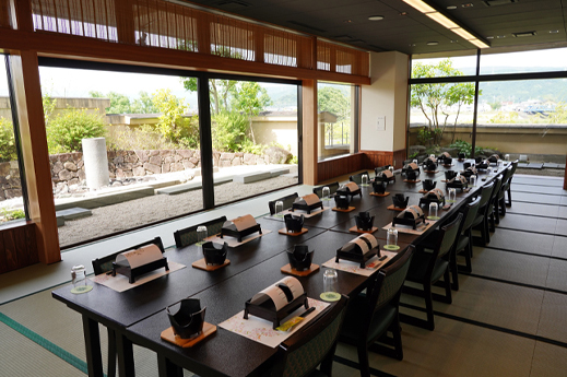 お食い初め、七五三、顔合わせ、結納、還暦祝いなどの慶事や、団体の法事なども対応可能です。完全個室のお食事処をご用意しておりますので、小さなお子様がいらっしゃるご家族にもごゆっくりお過ごしいただけます。