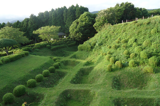 国指定史跡韮山反射炉。韮山反射炉は、実際に稼働した反射炉として日本で唯一残っている国指定の史跡です。炉体と煙突の部分を合わせた反射炉の高さは約15.7mです。